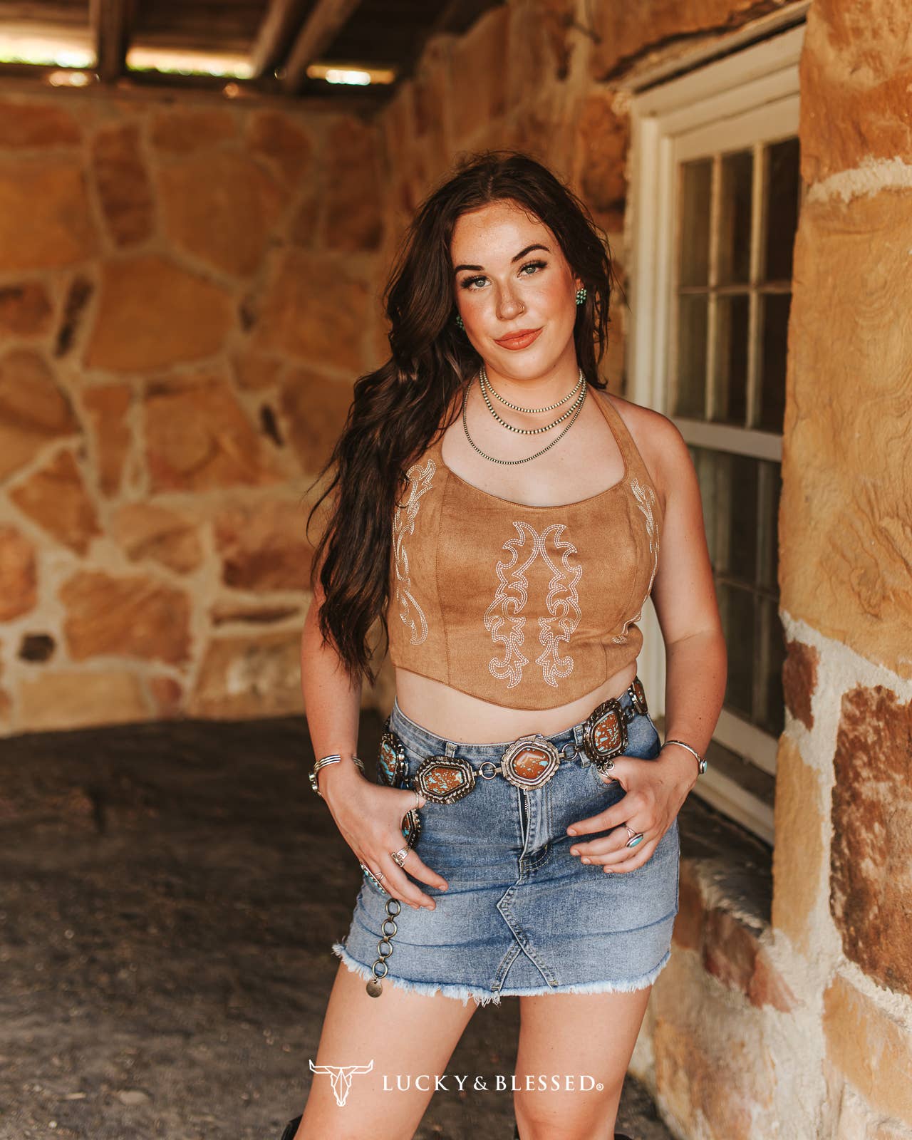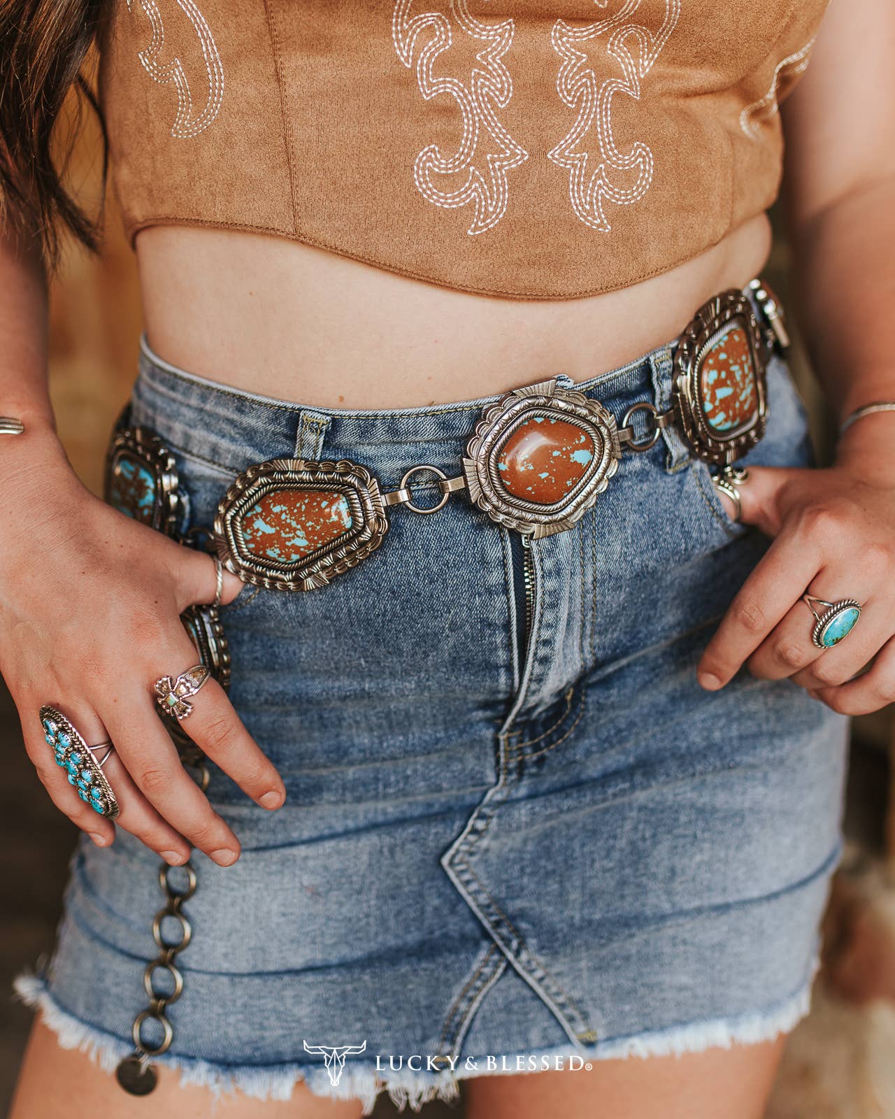 Western denim mini skirt