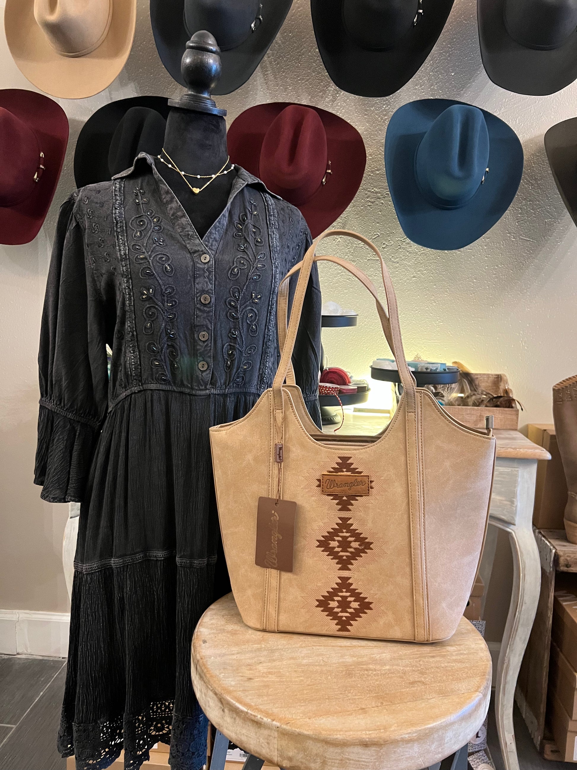 Wrangler Aztec Embroidered Shoulder Bag- Tan